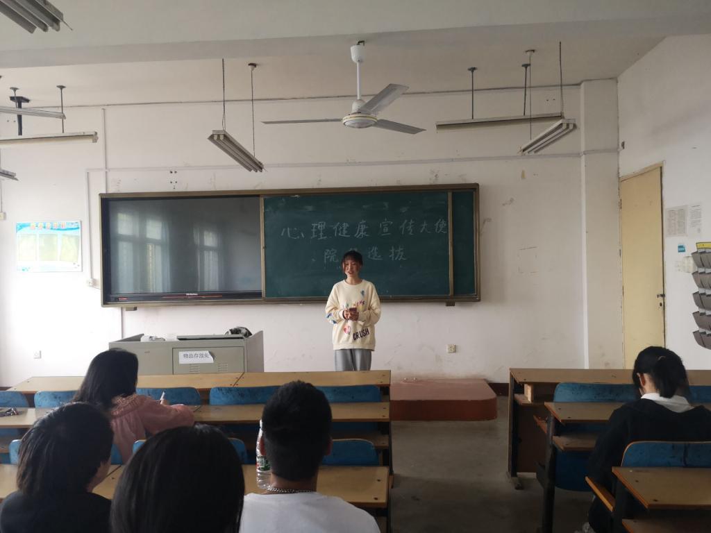 5月12日下午,旅游与艺术学院在明志楼N12P教室进行了心理健康宣传大使院级选拔活动。来自2021级的8名选手参加选拔。学工科老师曹国英、心理健康老师张娜担任评委。