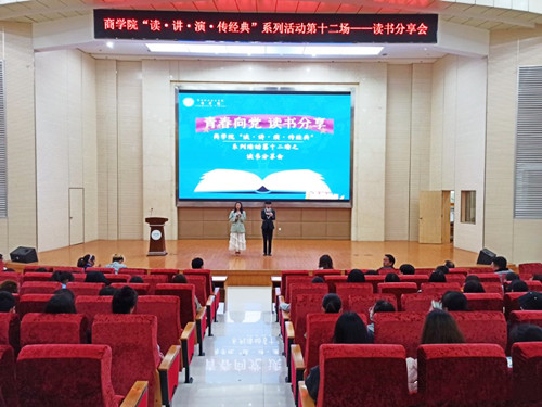 4月15日晚,商学院在图书馆一号报告厅开展了“读·讲·演·传经典”系列读书活动第十二场——读书分享会。商学院党总支书记方基志,副院长葛峰、刘晓斌,学工科科长梁光源,专职辅导员王小平,以及2019级、2020级部分班级参加此次读书分享会。