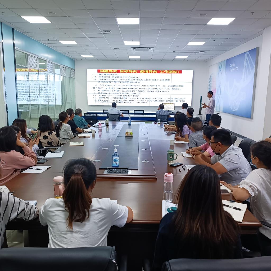 我校许正敏教授代表工作室做了《SARS-CoV-2“若遭遇” 机体免疫“何防御”》专题讲座。围绕微伞公司当前主要的核酸检测工作,基于“问题导向、目标导向、疫情导向、工作驱动”,分别围绕冠状病毒知多少、COVID-19病原体及其结构成分等九个问题一一展开,将医学微生物学、医学免疫学、生物化学、分子生物学和药理学等多学科知识融于一体,逻辑思维清晰、言语表达形象,尤其是许教授将生涩难懂的医学知识,通过理解提炼出的一句句诗句,给现场所有人员留下深刻印象。