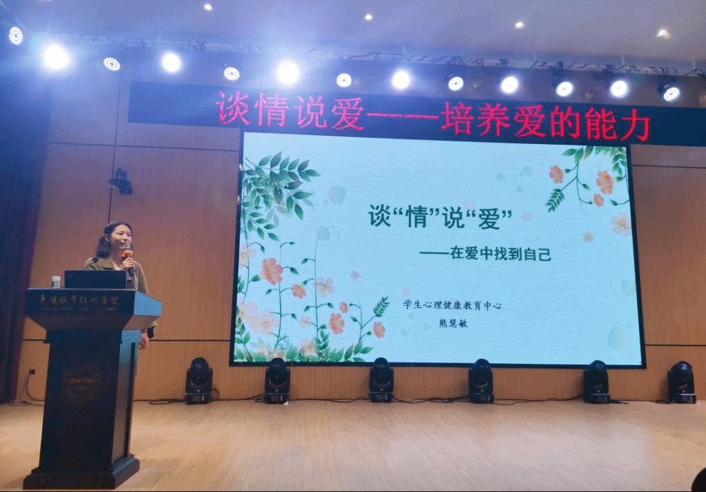 本次活动由学工科长张凤老师主持,邀请校心理健康教育中心熊慧敏老师主讲。熊老师以“谈情说爱——培养爱的能力”为主题,从什么是真正的爱情、在爱情中如何保持独立的判断和自我保护、以及如何正确走出失恋阴影等方面,结合真实的大学生恋爱案例让同学们加深了对爱情的理解与认识。活动过程中,同学们积极互动,现场气氛活跃,掌声连连。