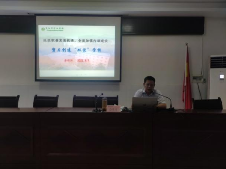 9月7日,护士学校开展新学期开学前教师校本培训,学校党委书记、校长佘传江作《抢抓职教发展机遇,全面加强内涵建设,努力创建双优学校》报告。