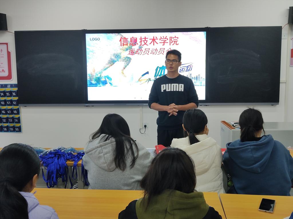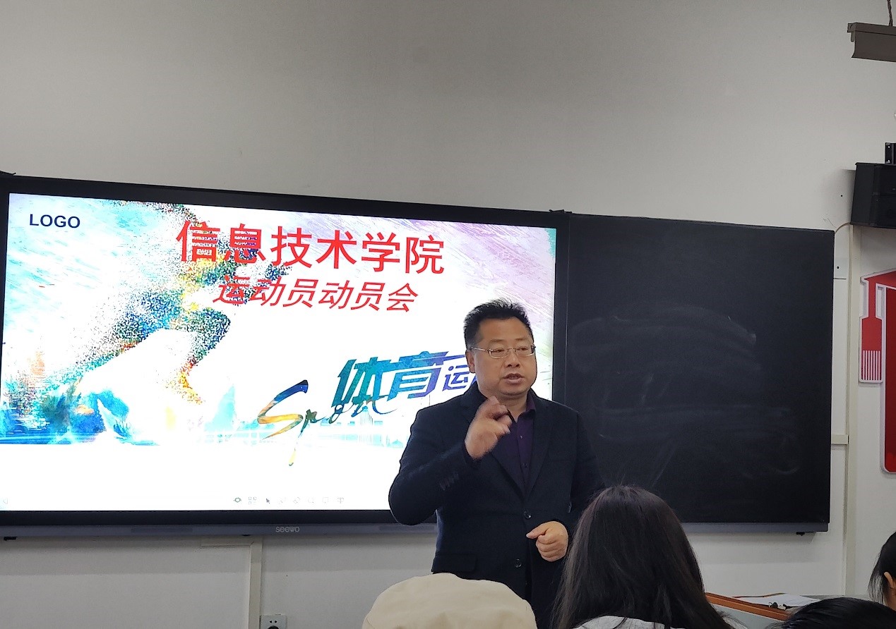 4月24日,信息技术学院在智造工业中心B401教室召开2023年春季运动会赛前动员大会。党总支书记汤才虎、学工科科长高延伟、阳光体育老师陈凡以及信息技术学院全体参赛运动员参加会议。