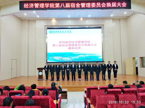 10月20日下午,经济管理学院在图书馆二号报告厅成功召开第八届宿舍管理委员会换届大会。经济管理学院副院长葛峰、学生科科长梁光源、学生科全体老师以及学生代表出席本次大会。