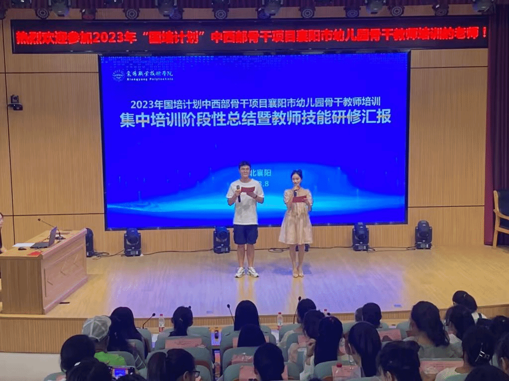 8月18日下午,历经10天的2023年“国培计划”中西部骨干项目襄阳市幼儿园骨干教师集中培训阶段性总结暨教师技能研修汇报演出在博学楼演播厅举行。襄阳市中小学教师继续教育中心副主任罗祖国,我校师范学院院长刘红新、副院长吴卫明,早期教育专业研究室主任李芳及班主任邓小兰、牛双红出席活动。