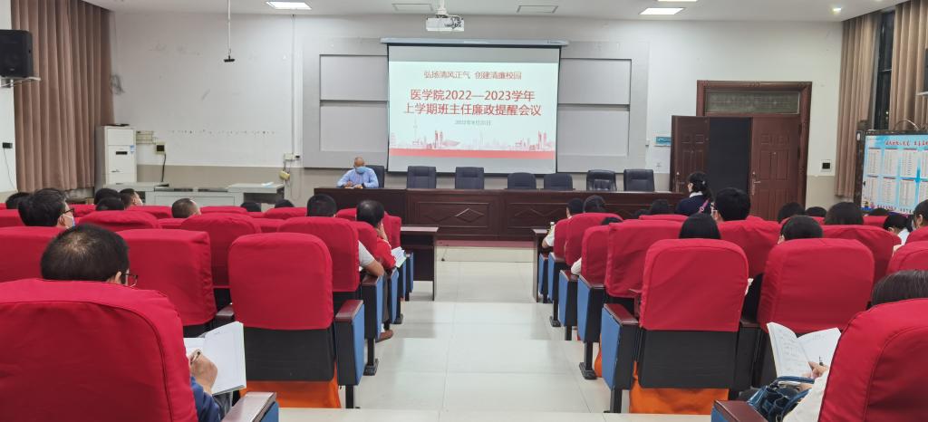 9月25日晚,医学院在阶一教室召开2022—2013学年上学期班主任廉政提醒会议,为全体班主任送上一份丰盛的“廉政套餐”。会议由医学院副院长张家忠主持。