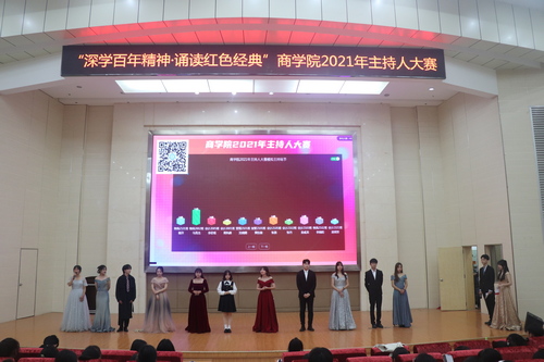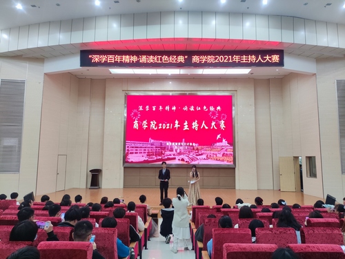 为更好学习贯彻习近平总书记“七一”重要讲话精神,积极参与校“深学百年精神谱系,厚植爱党爱国情怀”教育活动,11月4日下午3点30分,由商学院主办、演讲与口才协会协办的2021年主持人大赛在图书馆2号报告厅举行。400名学生参加。