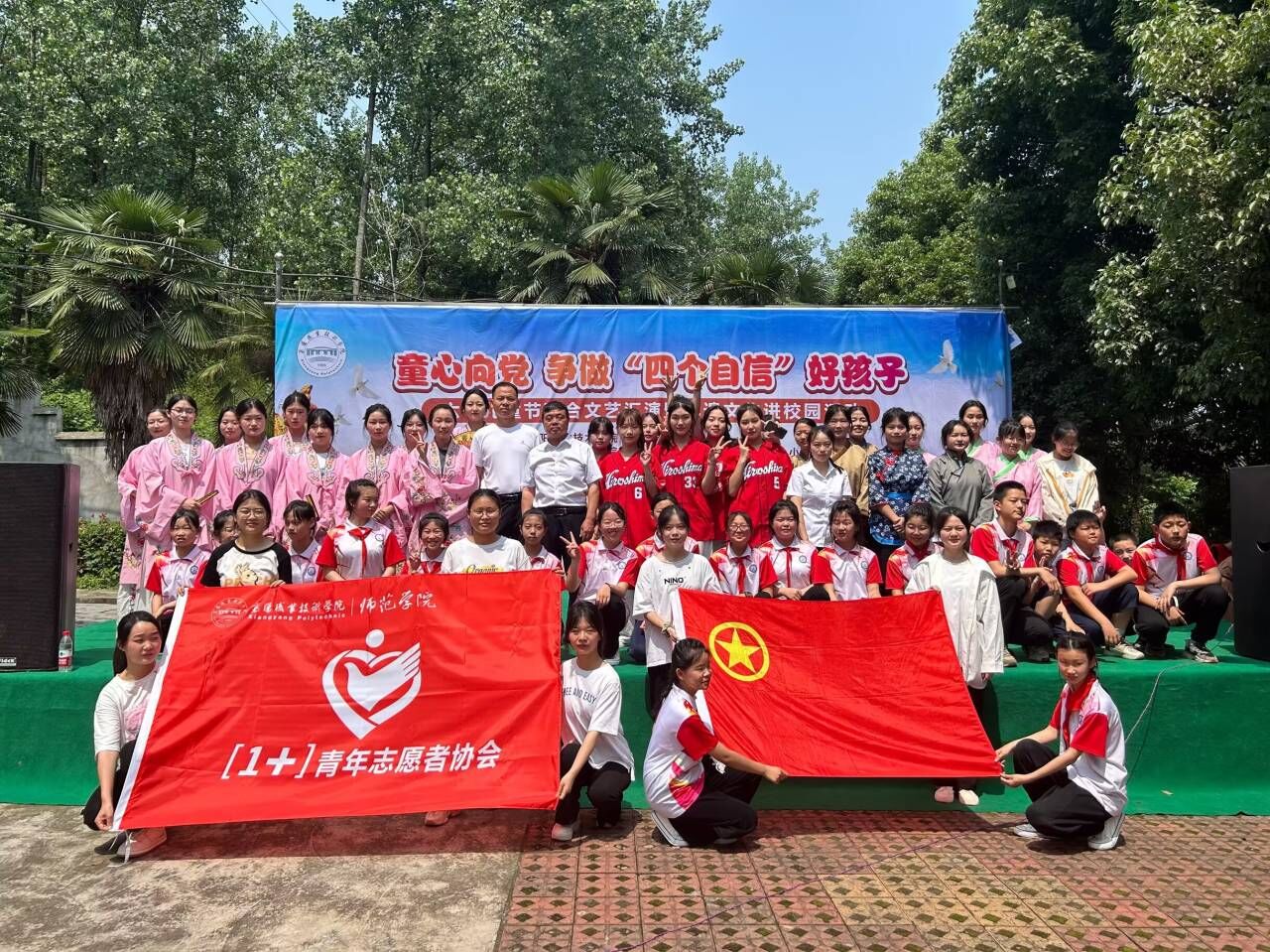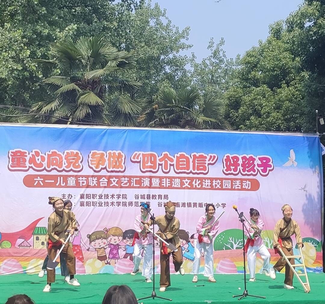 为创新送教下乡进基层薄弱学校,送非遗文化进社会主义新农村的活动方式,日前,师范学院将谷城县黄畈中心小学师生“请进来”,6月1日,该院师生志愿者积极“走出去”,同黄畈中心小学联合开展“童心向党 争做‘四个自信’好孩子”六一儿童节文艺汇演暨非遗文化进校园活动。谷城县教育局局长杨爱民等教育局相关科室负责人莅临现场观摩指导。