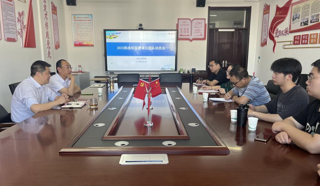 为全力备战即将在贵州举行的2023年全国“挑战杯”决赛,6月6日下午,汽车工程学院在智造工业中心D栋406会议室举行备赛“挑战杯”国赛动员会。汽车工程学院党总支书记王群、副院长韩向东、团总支负责人孙兆轩,全体项目团队师生参会。