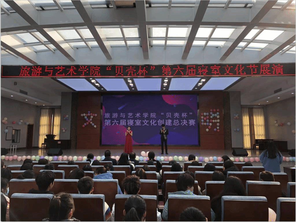 为巩固创文成果,加强寝室文明建设,12月10日下午2点半,旅游与艺术学院在智能制造大楼四楼学术报告厅举行“第六届寝室文化节展演”。学校后勤物业中心主任闫道付、学生公寓主管曹华,雅园一、三楼、五栋宿管阿姨,旅游与艺术学院全体学工人员、20级全体班主任和学生参加本次活动。