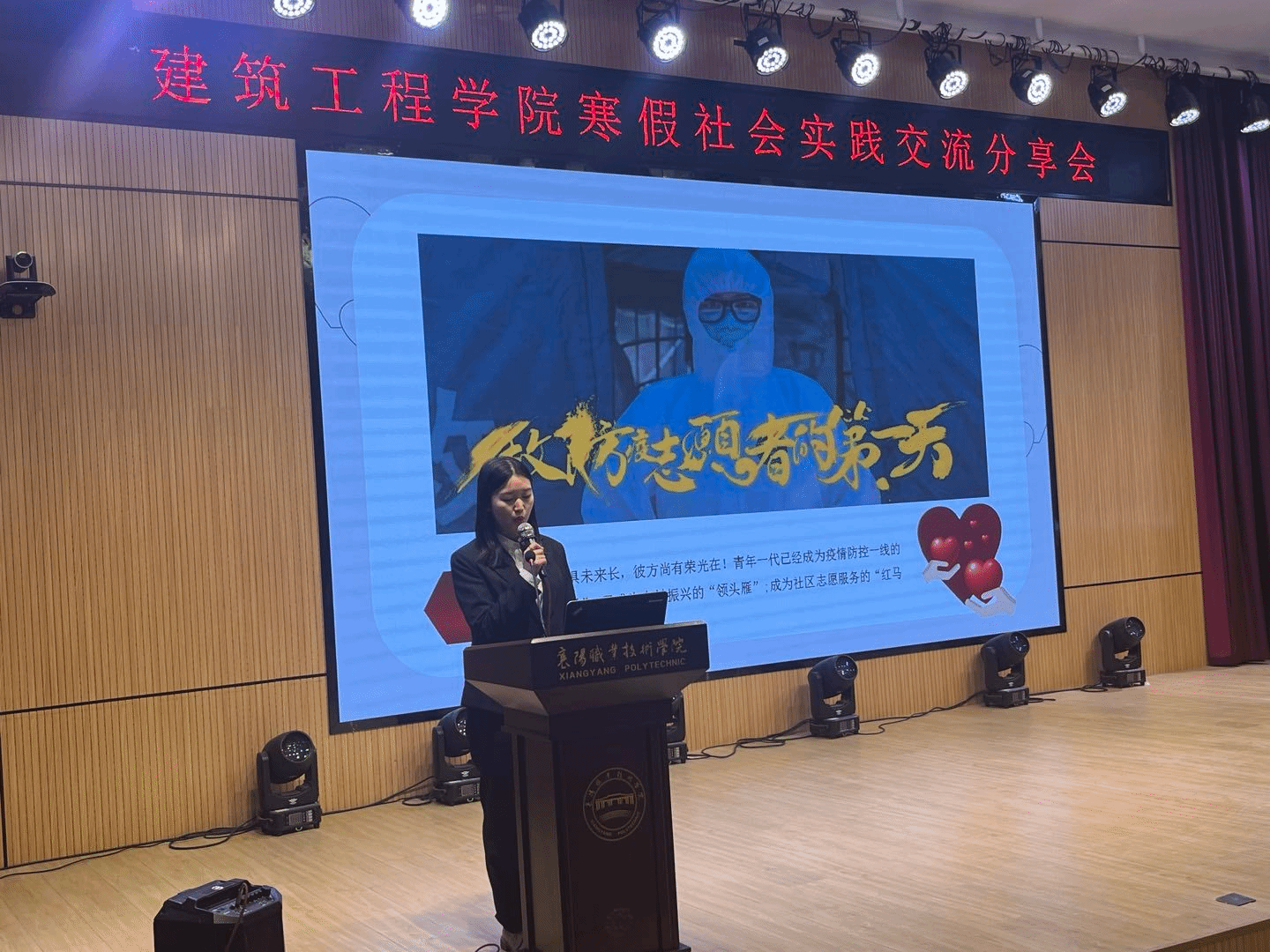 李襄静对寒假期间开展寒假社会实践活动进行了回顾和总结,向无私奉献、热心服务的建工学子表示肯定,同时寄语大学生要进一步树立理想、坚定信念,博学笃行、提升自我,以知促行、以行求知,把社会实践的收获和成长带回去,在今后的学习生活中珍惜当下,不负韶华,用奋斗礼赞时代,用拼搏定义未来,以青春奋斗书写青年担当。随后,十名优秀学生代表围绕自己寒假社会实践中学习体验、收获感悟进行交流发言。他们表示,近一个月的实践经历对增进理论与实践相结合、提高对社会的认知有极大的帮助,不仅提升了个人能力,也加深了对自己家乡的认识,真正参与到家乡建设当中来,是一次非常珍贵的人生经历。