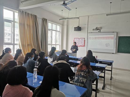 一班一宣讲,教育全覆盖。邀请隆中派出所民警,一对一进班宣讲关于防范电信诈骗的相关知识,确保每位学生都知晓。