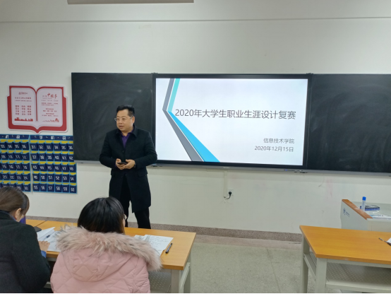 为全面普及职业生涯规划知识,引导学生树立正确的成才观、就业观和职业规划意识,科学规划职业生涯、学业生涯,12月15日晚,信息技术学院在智能制造工业中心B栋开展了以“激扬青春、憧憬未来”为主题的第十七届大学生职业生涯规划大赛复赛。信息技术学院党总支书记汤才虎、副院长张坤、就业办主任何平及指导教师参加了活动。