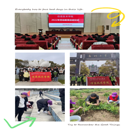 信息技术学院落实立德树人教育目标,积极构建德智体美劳全面培养的教育体系,进一步培育和践行社会主义核心价值观,积极培养大学生爱劳动的意识和良好的劳动习惯,多措并举开展形式多样的劳动实践教育活动和主题教育实践,使劳动不断成为学生们全面发展最鲜亮的底色。