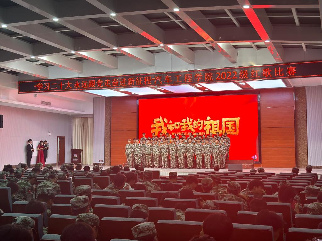 为深入学习贯彻党的二十大精神,引领青年学生永远跟党走,激励青年学生用红色经典歌曲唱出对祖国、对党、对人民的无限热爱,增进集体意识,引导同学们树立成才报国的伟大志向,汽车工程学院于2023年8月31日在智造·工业中心四楼报告厅隆重举行了“学习二十大 永远跟党走 奋进新征程”2022级红歌比赛。学校党委宣传部钟炜老师,汽车工程学院党总支书记王群、汽车工程学院学工院长韩向东,师范学院郑磊老师担任评委。