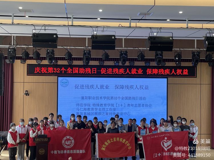 5月15日是第32个全国助残日。今年助残日的主题是“促进残疾人就业,保障残疾人权益”。日前,由马仁海教育学名师工作室策划、襄阳职业技术学院[1+]青年志愿者协会承办的助残日系列活动在博学楼举行。襄阳展颜之星特殊教育中心蒋芳校长及孤独症小朋友一起参加了活动。特殊教育专业主任毛小波、专业教师牛双红全程参与。特殊教育学院院长马仁海出席活动并讲话。