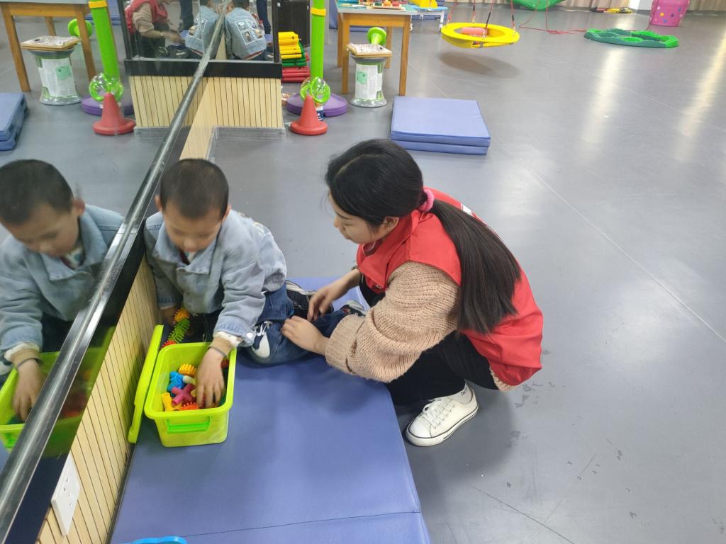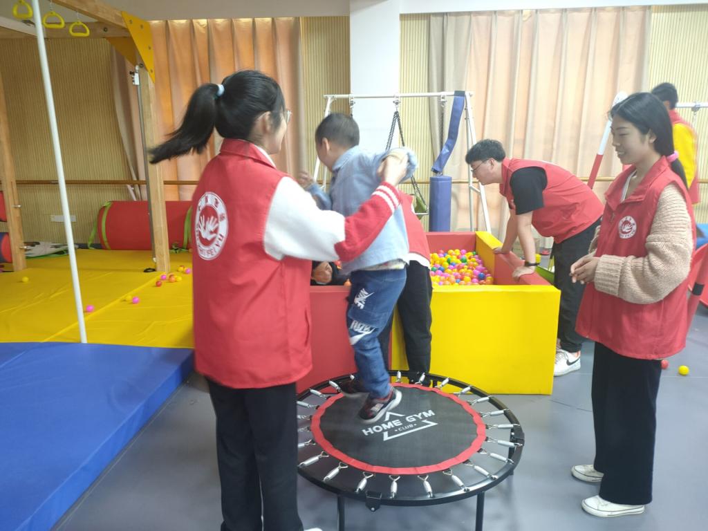 节目表演结束后,特殊教育专业学生带领孤独症小朋友们在博爱楼融合教育实训中心进行了感觉统合训练、精细动作训练。