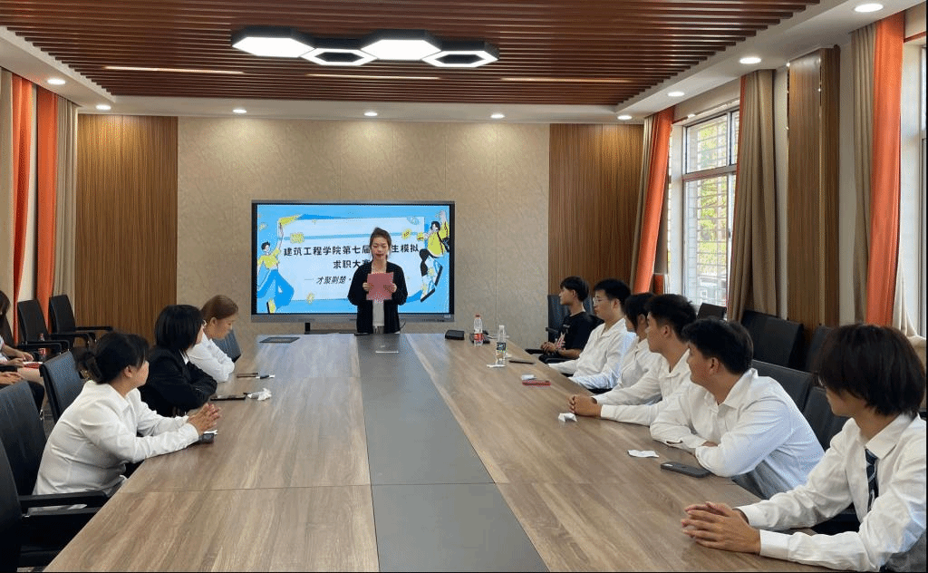 为增强大学生的心理素质和应聘能力,帮助大学生树立正确的择业观,掌握求职面试技巧提升就业能力,9月15日下午,建筑工程学院在德馨楼107举办了以“聚荆楚·勇往职前”为主题的模拟求职大赛。