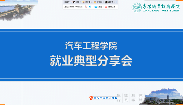 为帮助毕业生积极寻找合适的工作岗位,6月7日下午3点,汽车工程学院就业办通过视频直播的形式,举办了“2017届毕业生就业典型分享会”。副院长向炜、就业办定莉敏参加会议。