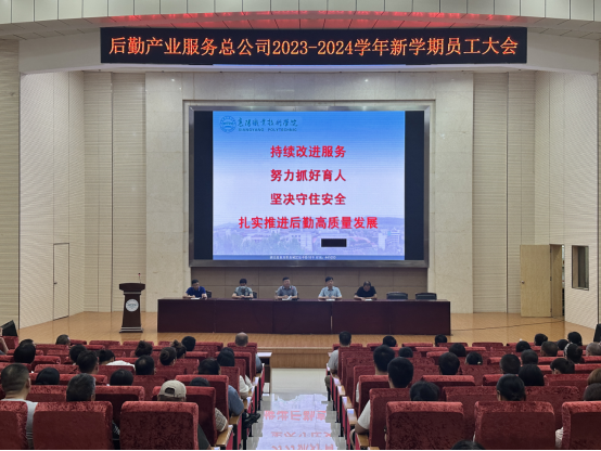 8月14日下午,后勤产业服务总公司新学期全体员工大会在主校区图书馆二号学术报告厅召开。大会由后勤党总支书记余涛主持。