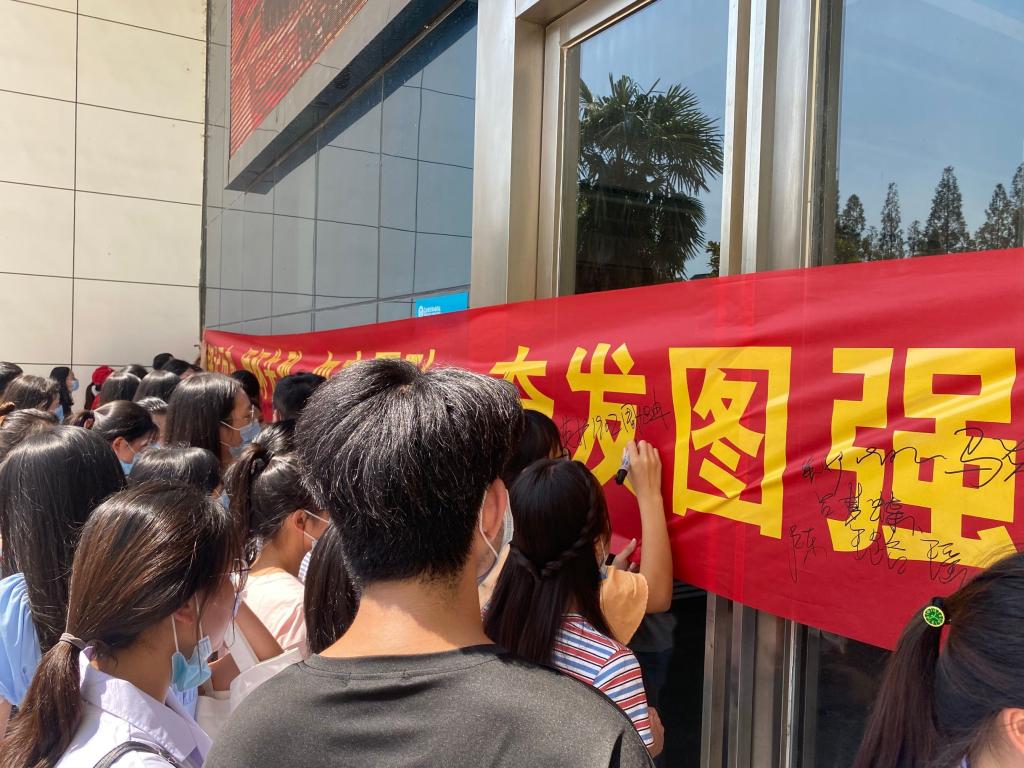 活动中,医学院青年志愿者协会会长讲述了九一八事变的历史背景、历史意义和影响;随后,同学们以集体默哀的方式,表达对革命先烈的深切缅怀和崇高敬意。广播二台的学生干部饱含深情的诗朗诵《觉醒,中华》,极大激发了全场学生的爱国情怀和民族荣辱感,将活动氛围推向高潮。最后,同学们在纪念活动条幅上郑重签名,以抒发自己的拳拳爱国之心,并鞭策自己,以史为鉴、发奋图强。