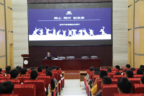 9月25日下午,汽车工程学院在图书馆一号报告厅举行三环订单班招聘宣讲会。湖北三环海通企业经理徐晋、三环襄阳区行政经理王凡、襄阳三环鸿通售后经理王丽娟参加活动。2018级汽车检测维修技术专业的150名学生参加宣讲会。副院长向炜主持宣讲会。