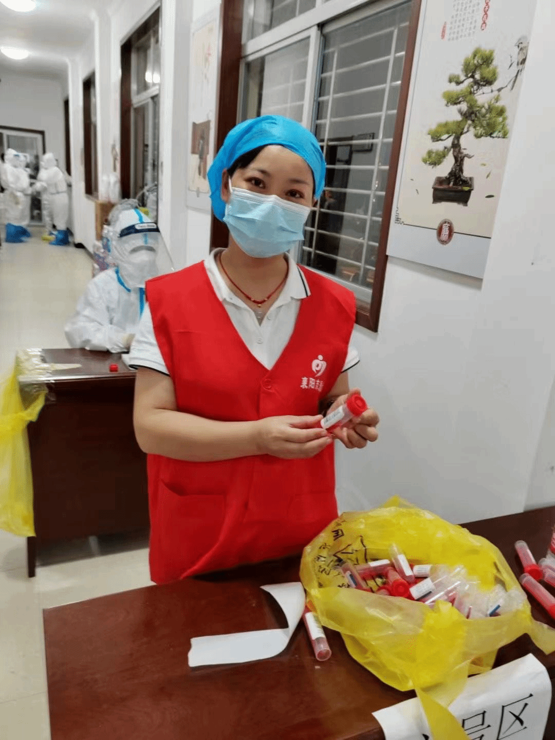 8月18日,由医务部主任张威带队组成的10人(其中党员8人)医疗队出征南漳。同日,又派出2名检验人员参加市气膜实验室核酸检测工作。