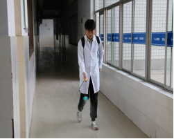 9月29日下午,农学院畜牧兽医党支部组织学生开展消毒劳动教育活动。党员教师带领20级在校预备党员、发展对象、入党积极分子等,对农学院教室、实训室及其走道、楼梯等公共场所进行全面清洁,并结合所学专业知识进行环境消毒,助力校园疫情防控。