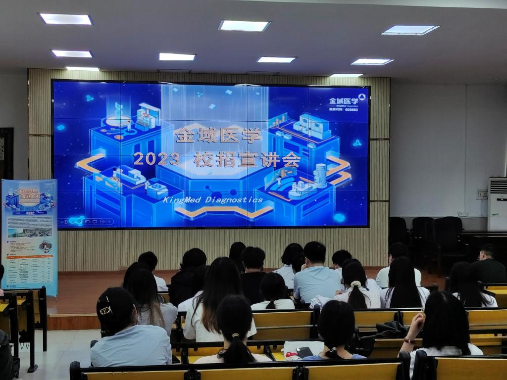 金域医学是一家以第三方医学检验及病理诊断业务为核心的高科技服务企业。宣讲会上,公司代表精心准备宣讲材料,向学生展示了企业文化、行业现状、就业形势及人才培养模式等多方面信息。互动环节,校企双方就政策、待遇、后续发展等问题进行了深入交流。
