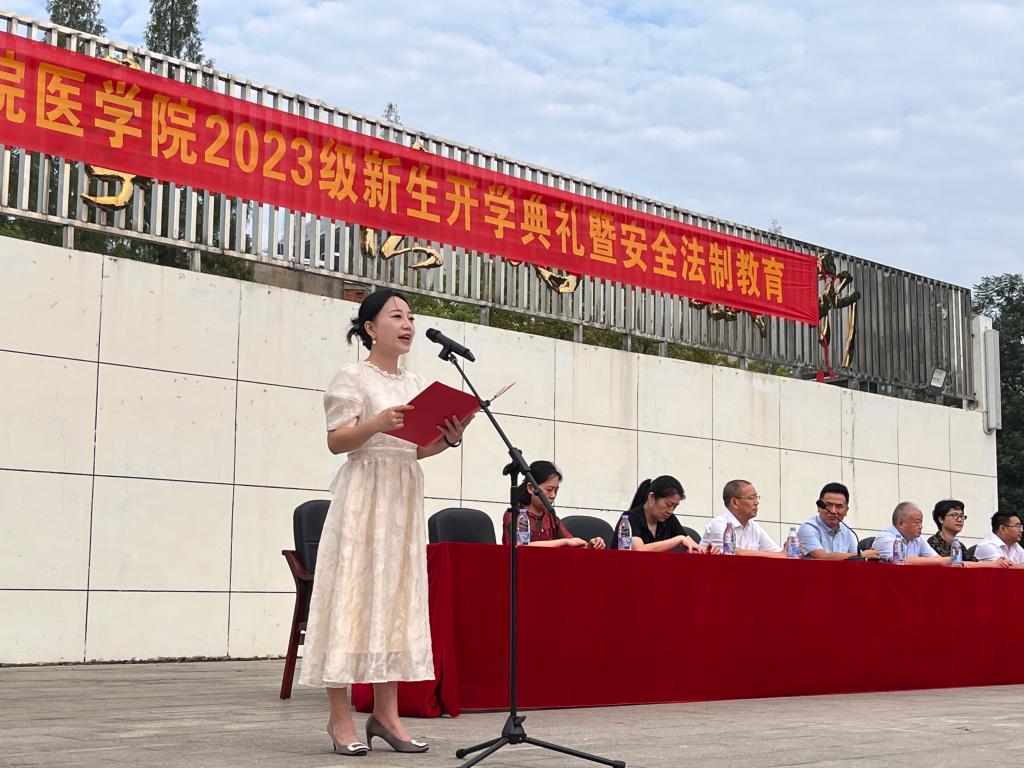 金秋送爽,天高云淡。9月7日,医学院2023级新生开学典礼在南校区田径场隆重举行。校学工处和各职能部门负责人,医学院全体院领导、新生班主任、教师代表和优秀校友出席本次典礼。开学典礼由医学院副院长朱杰主持。