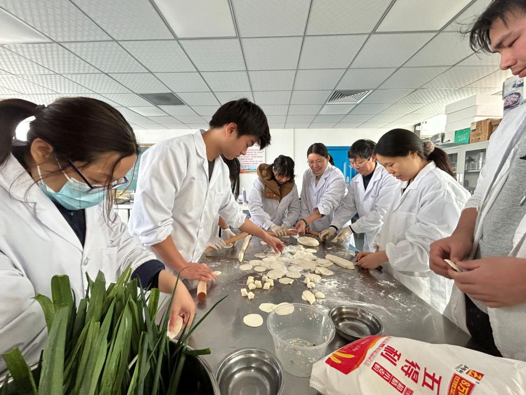 为丰富学生课余生活,帮助同学们在紧张学习之余放松心情,感受冬日温暖,同时弘扬中华民族传统节日文化,农学院食品检验检测党支部党员老师和陪伴成长结对学生,于12月22日在健行楼食品工艺实训室开展包饺子活动。