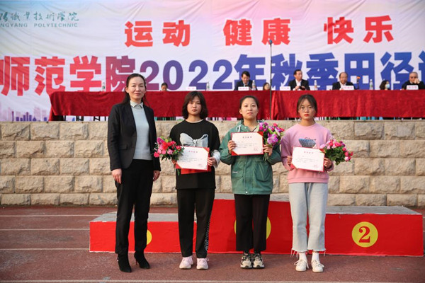 此次运动会共有899运动员报名参加,设置20个男女比赛项目。现场有192名志愿者服务在比赛的各个角落。比赛设单项一、二、三等奖和男子、女子团体奖。最终,语文教育2205班获得男子团体奖,小学教育2207班获得女子团体奖,语文教育2202班获得最佳组织奖。公共课部党总支书记陈建波、师范学院党总支成员分别为获奖的运动员和团体颁奖。