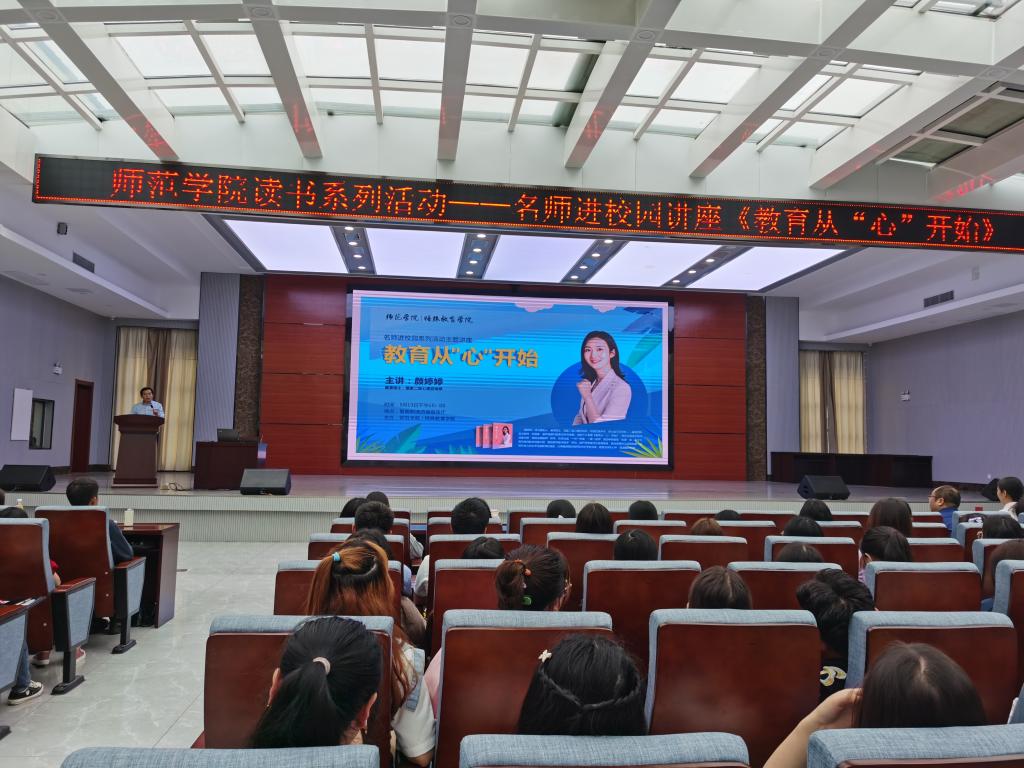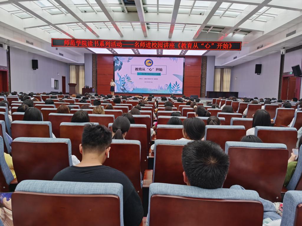 5月13下午3点,应师范学院邀请,襄阳四中语文教师颜婷婷在智能制造报告厅,为20级语文教育、小学教育、英语教育专业700名学生及相关班级班主任,作《教育从“心”开始》主题讲座。该讲座是师范学院读书系列活动——名师进校园活动之一。