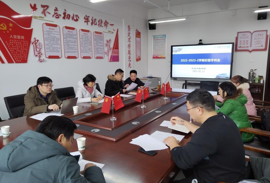 2月13日下午,汽车工程学院2022—2023—2学期初督导例会在智能制造大楼D406会议室举行。会议由教学副院长沈先飞主持。学校质量办主任熊绍刚、汽车工程学院院长程洪涛、襄阳汽车轴承股份有限公司党委副书记贾孟飞、达安汽车公司工程师袁辉、汽车工程学院二级教学督导以及教学秘书王海光参加会议。