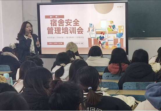 11月30日,师范学院全体辅导员分宿舍园区对寝室长进行宿舍安全管理培训,全体寝室长及宿管会成员参与。