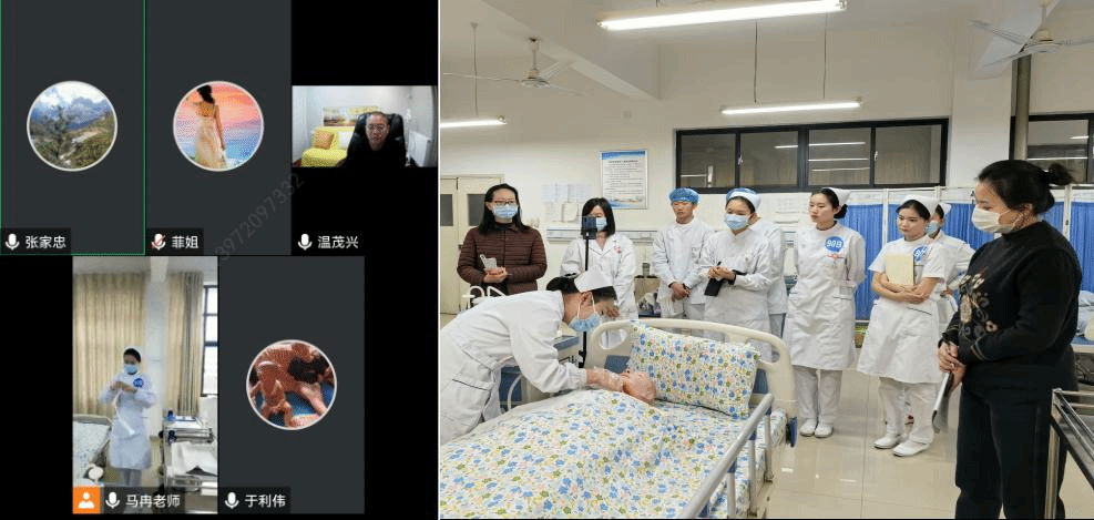 护理专业学生目前正在备赛2022年湖北省护理技能竞赛。其间,医学院负责人、指导教师组成指导团队,线上、线下同步指导。疫情期间,指导教师与学生们同吃同住,经常备赛到凌晨一两点。师生通过反复打磨竞赛标准,利用各种方法练习,互相交流备赛经验,不断提升临床护理操作技能。