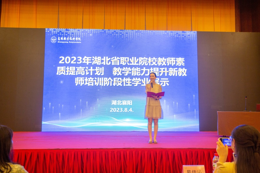 阶段性学业汇报中,推荐小组紧紧围绕培训方案中提供的师德师风建设、课堂规范和艺术、岗课赛证、产教融合等议题,学员们的展示思考有深度,表达有力度,展现了新教师们端正的学习态度和突出的学习能力。班主任王芳代表培训方总结致辞。十堰高级职业学校吴梦伊和随州职业技术学院易佳沁作为优秀学员代表发言。
