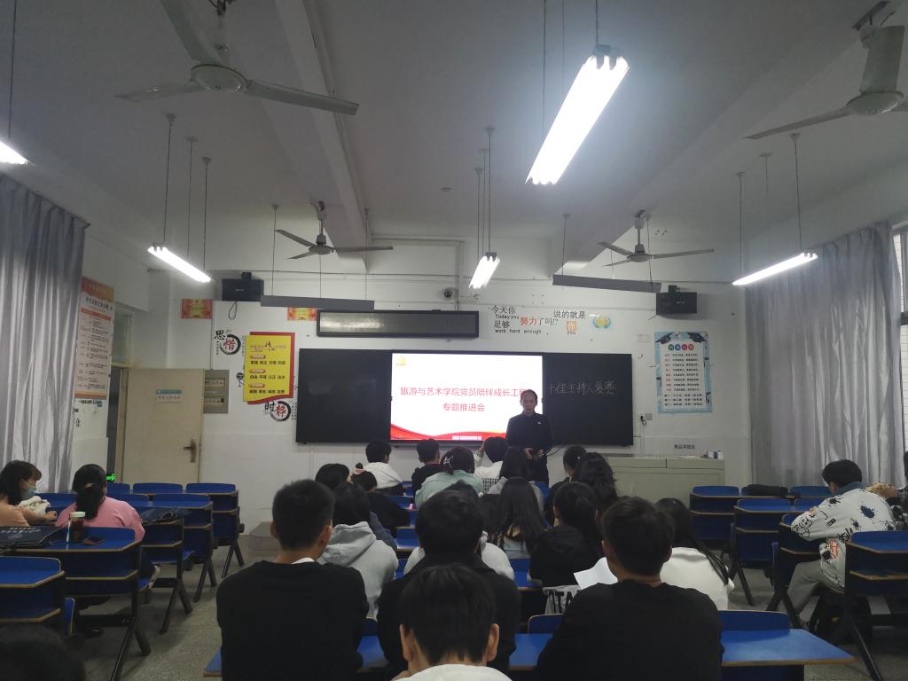 10月23日下午,旅游与艺术学院党总支在笃学楼N106教室举行2022—2023学年度“陪伴学生成长”工作推进会。党总支全体党员和人事处、学报编辑部、高教所全体党员以及党员干部联系结对的学生参加会议。