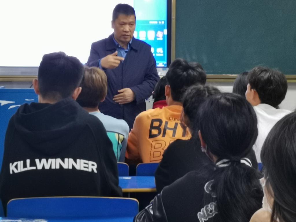 会议结束后,高教所所长李祥富走进结对学生李陈杰所在的旅游管理2201班,利用班会时间和全班学生进行了交流。