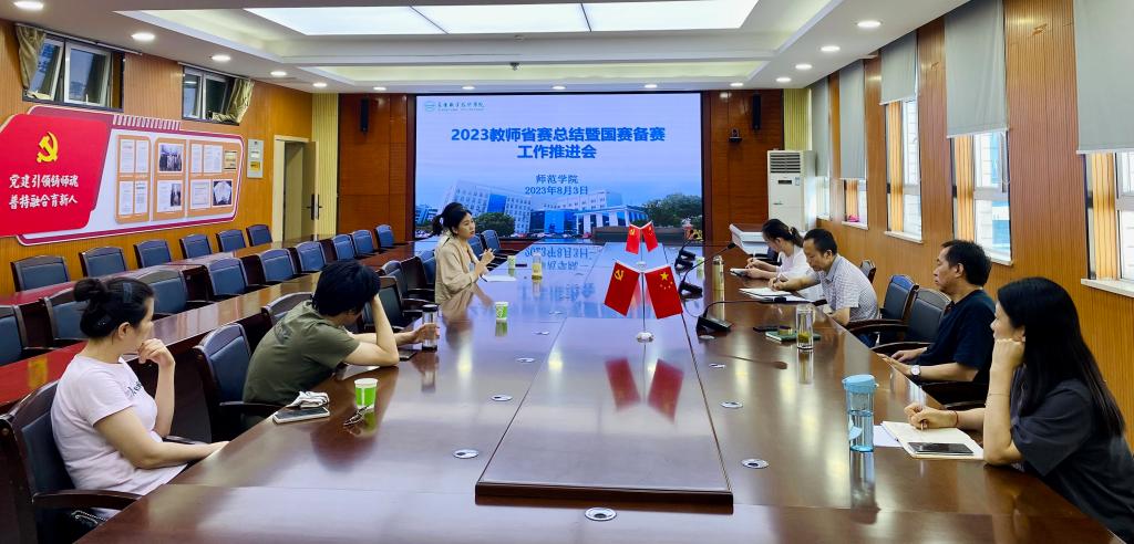 为进一步深化认识,明确目标,力争在接踵而至的国赛中取得优异成绩,8月3日下午,师范学院在博爱楼四楼会议室召开2023年教师省赛总结暨国赛备赛工作推进会。师范学院党总支书记张丹、院长刘红新,特殊教育学院院长马仁海,师范学院副院长杨海曼,相关研究室主任及参赛教师参加会议。会议由刘红新主持。