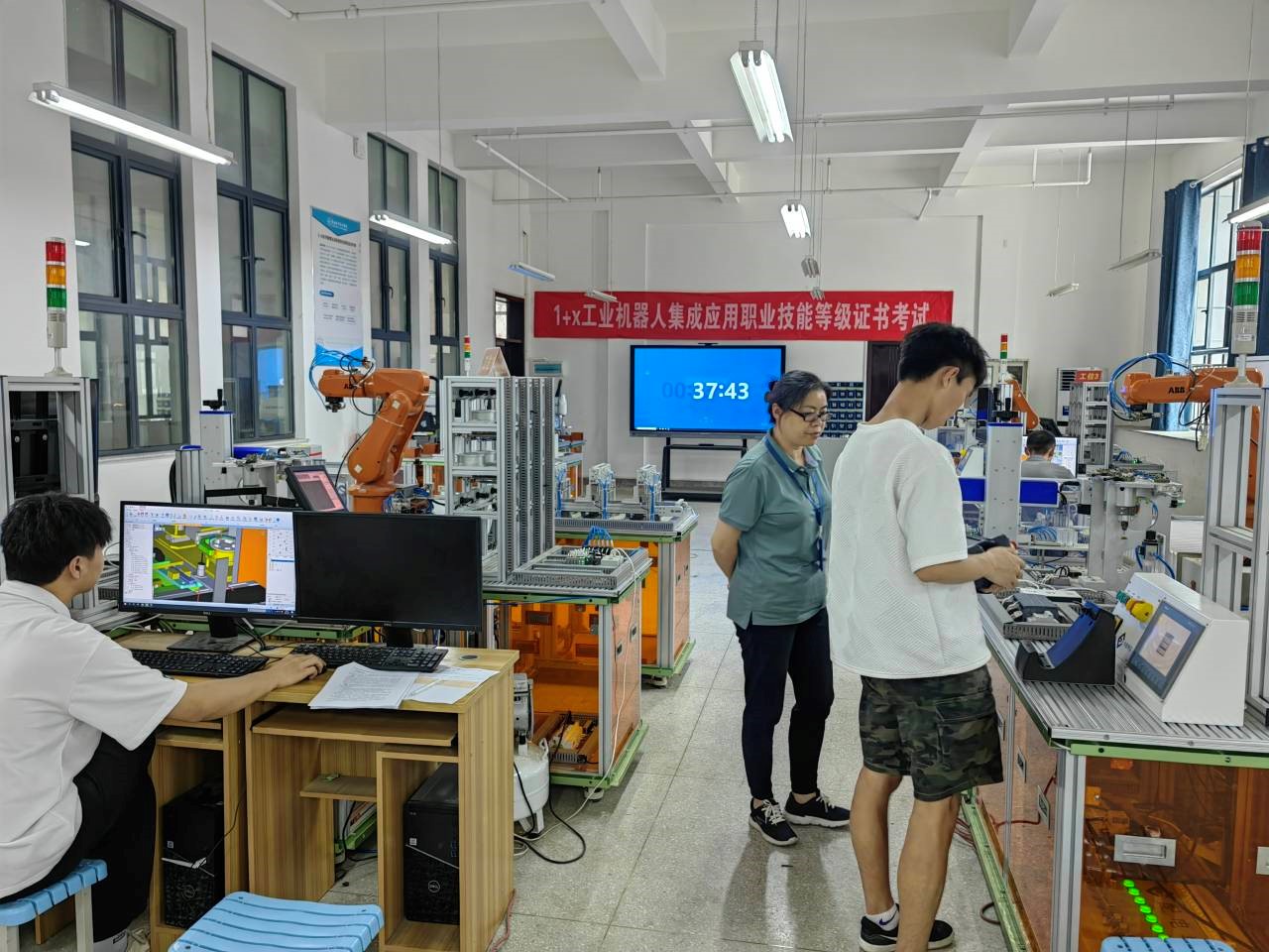 6月21日下午,汽车工程学院工业机器人技术教研室顺利完成了2023年工业机器人集成应用“1+X”职业技能等级证书(中级)考核。工业机器人专业和机电一体化专业30名学生参加考核。