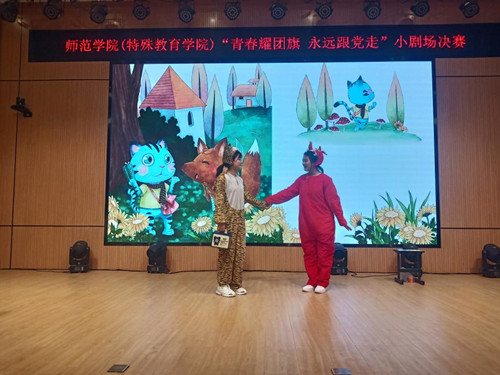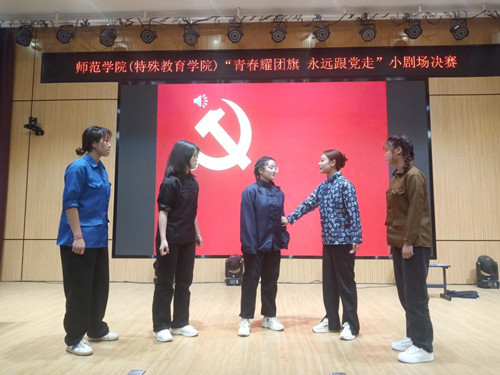 4月7日,师范学院(特殊教育学院)在博学楼一楼演播厅成功举办“青春耀团旗 永远跟党走”小剧场决赛。经过初赛、复赛选拔,此次决赛共有8个节目同台竞技。最终,《星火相传》《党旗在心中》《拔苗助长》获一等奖;《永远跟党走》《征兵》《风雪长征路》获二等奖;《小兵张嘎》《小熊请客》获三等奖。