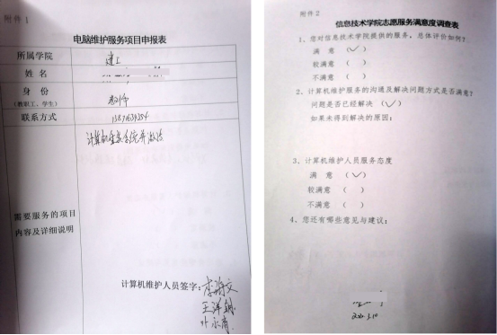 小分队组建后,不断接到服务邀约,受到广泛好评。服务前,团队老师和同学精准对接被服务者,详细询问电脑问题,确定服务项目、服务人员和具体时间;服务结束后,志愿者定期回访,确保电脑使用者得到细致贴心满意的服务。
