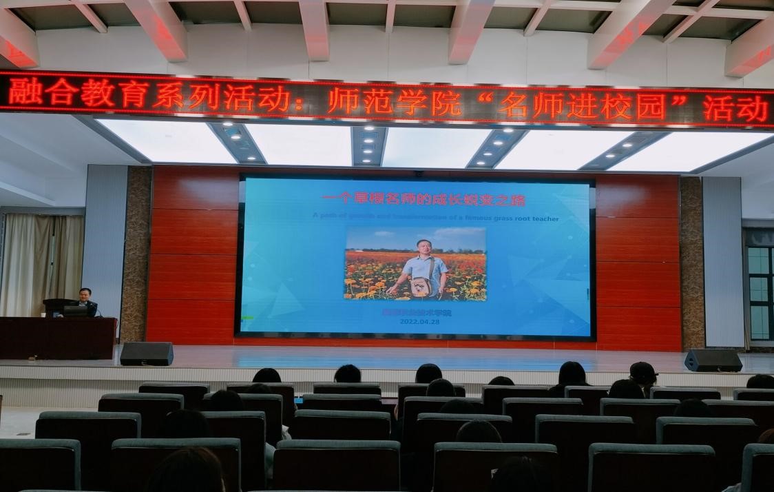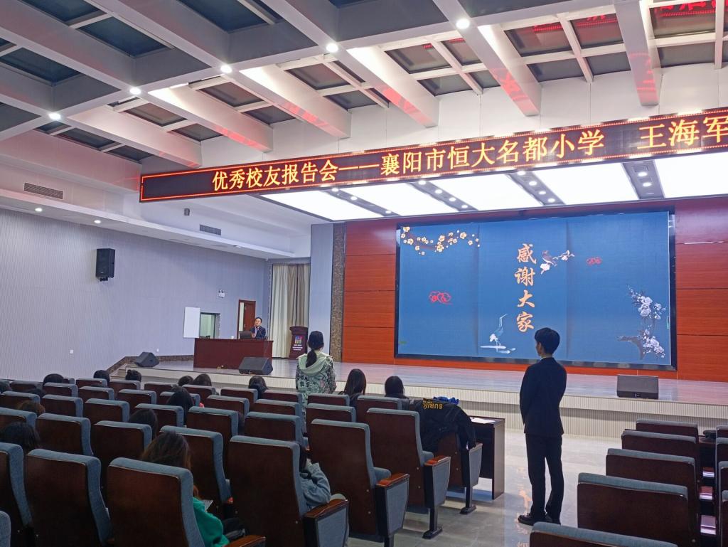 4月28日晚7点,师范学院在智能制造大楼四楼报告厅举办融合教育系列活动之“名师进校园”。1995届校友、湖北省特级教师、“隆中名师”王海军应邀为小学教育专业20级300多名学生作报告。