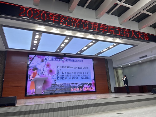 为进一步丰富同学们的课余生活,增强大学生综合素质,展示当今大学生的青春风采,推动我校精神文明建设,10月29日晚7点,由经济管理学院主办、演讲与口才协会协办的“2020年经济管理学院主持人大赛”在智造工业中心4号楼报告厅举行,570多名新生参加。