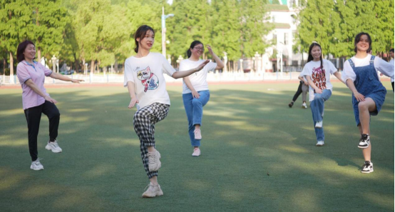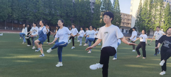 5月4日下午,医学院组织开展了陪伴学生成长活动——党员教师带领学生,在运动场打卡时下流行的《本草纲目》毽子操。
