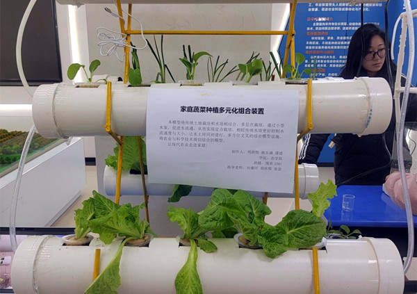 同学们积极参与本次活动,充分发挥想象力和创造力,结合自身专业特点,制作出家庭蔬菜种植组合装置、自动灌溉装置、鱼水共生等作品。