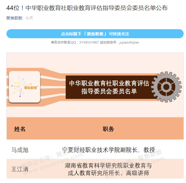 近日,中华职业教育社职业教育评估指导委员会公布了全国44位专家委员名单,我校教授姜海华当选。这是姜海华继2016年荣获全国“第五届黄炎培职业教育奖”后,再获殊荣。