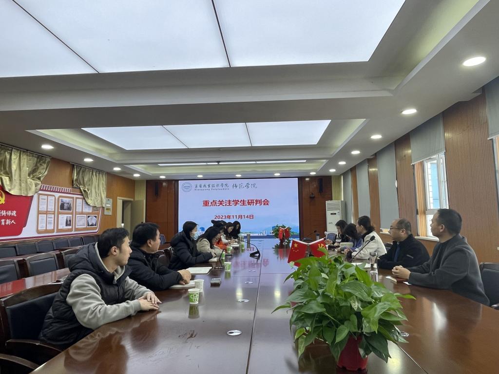 11月14日,师范学院召开11月份重点关注学生研判会。心理健康教育中心负责人白一鹭,师范学院党总支书记张丹,师范学院副院长彭建设,全体学工人员、重点班级班主任、新任班主任参加会议。