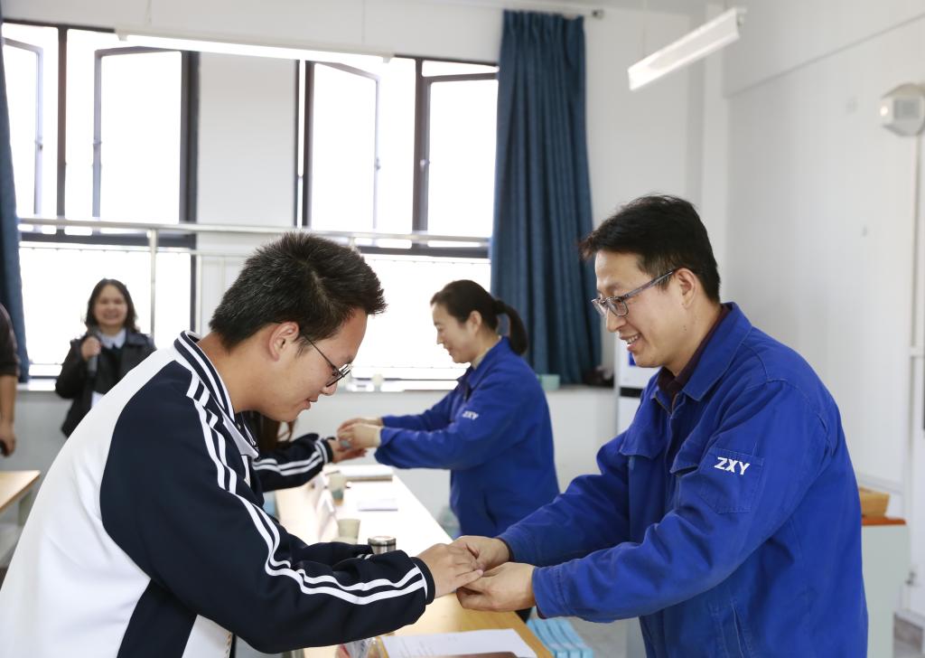 程洪涛表示,通过现场工程师项目,将持续深化全方位校企合作,共同推动智能制造人才培养质量的提升。活动中,袁东辉向程洪涛颁发了现场工程师班牌。机械2305班辜畅作为学生代表,分享了对项目的理解以及学习规划。丁璐瑶代表公司勉励全体同学,在工学交替学习阶段,能够通过自己的踏实努力取得成功,最终成长为一名合格的轴承制造现场工程师。现场还开展了学生与企业技术人员师徒结对和拜师仪式。