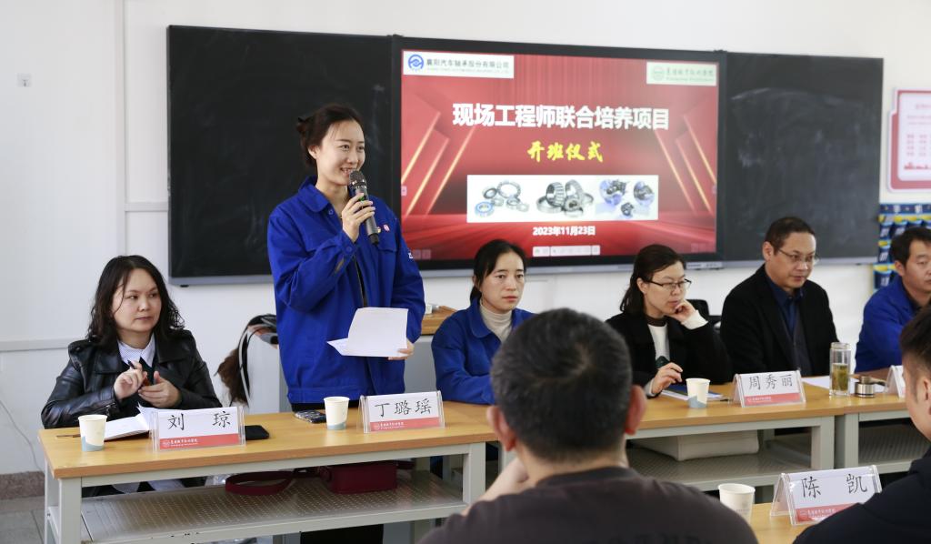 现场工程师项目由我校与襄阳汽车轴承股份有限公司联合申报,于今年7月通过湖北省教育厅评审公示。下一步,汽车工程学院将组织专业师资力量赴企业开展实践锻炼,与技术人员合作对轴承制造类相关课程实施“三课”改革,并首先应用于现场工程师班教学。